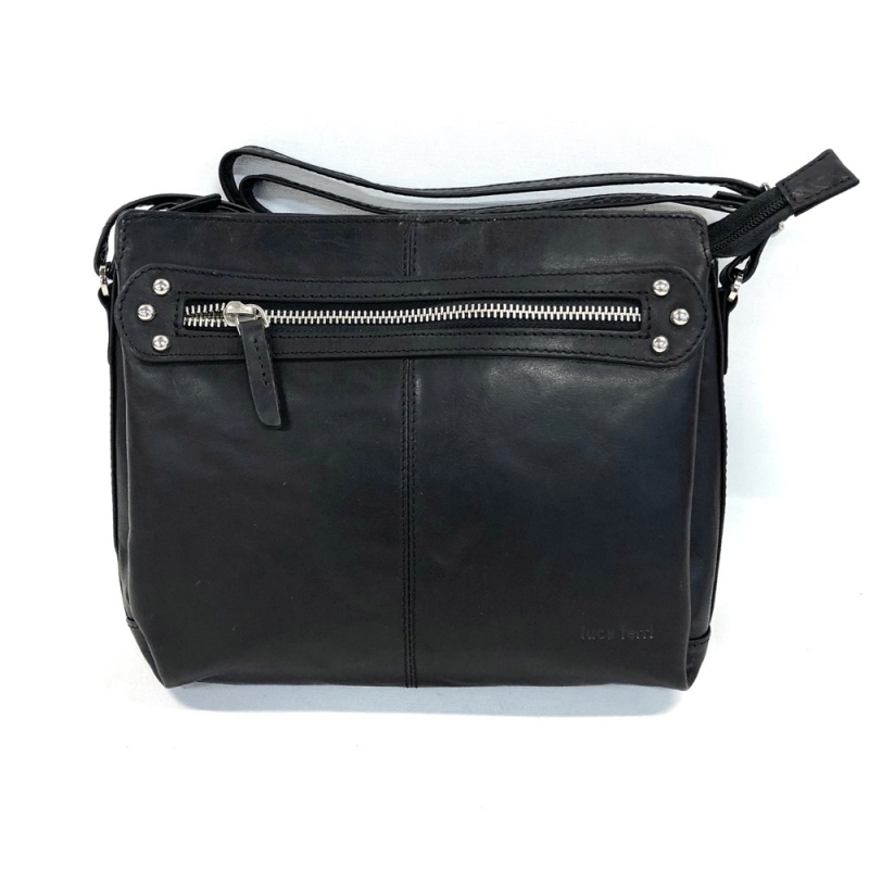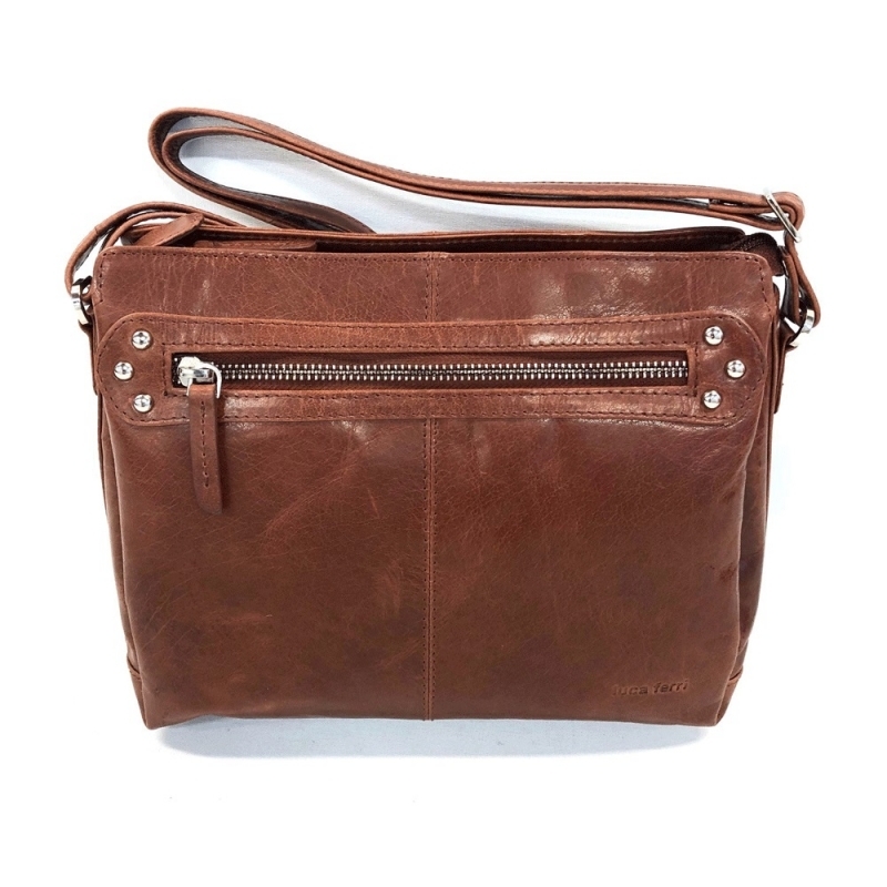 Denna kallskinn väska i vintage stil har flera innerfack, regelbar axelrem samt dragkedjor på baksida. Skinnet på väskan är frå från kemiska ämnen och tillverkningsprocessen är gjord på hållbart sätt. Färgerna finns i bridge och svart.MåttLängd 250mmBredd 85mmHöjd 200mm